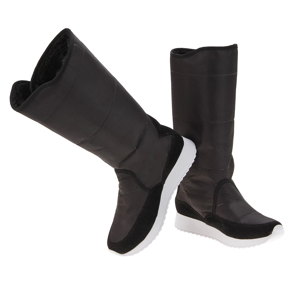 Bota cano alto produzida em camurça e nylon na cor preta, com forro em lã sintética preta, e com um fechamento na canela com 2 fitas fixadoras que dão aquele acabamento bem descontraído e casual. Essa Bota em Camurça e Nylon e Forrada é perfeita para aqueles dias mais frios.