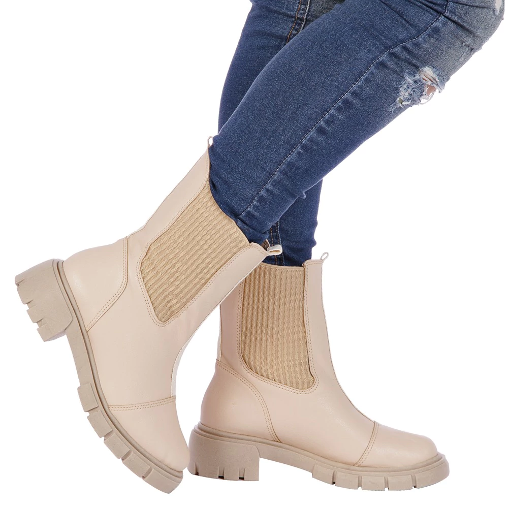 Tendência nessa estação, a Bota Coturno é aposta certa para todos os momentos. Com salto baixo e cano médio, tem modelagem coturno em couro napa na cor bege e exibe recorte têxtil e elástico na lateral, o que facilita o calce.