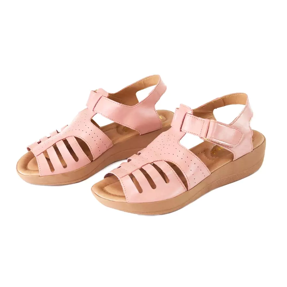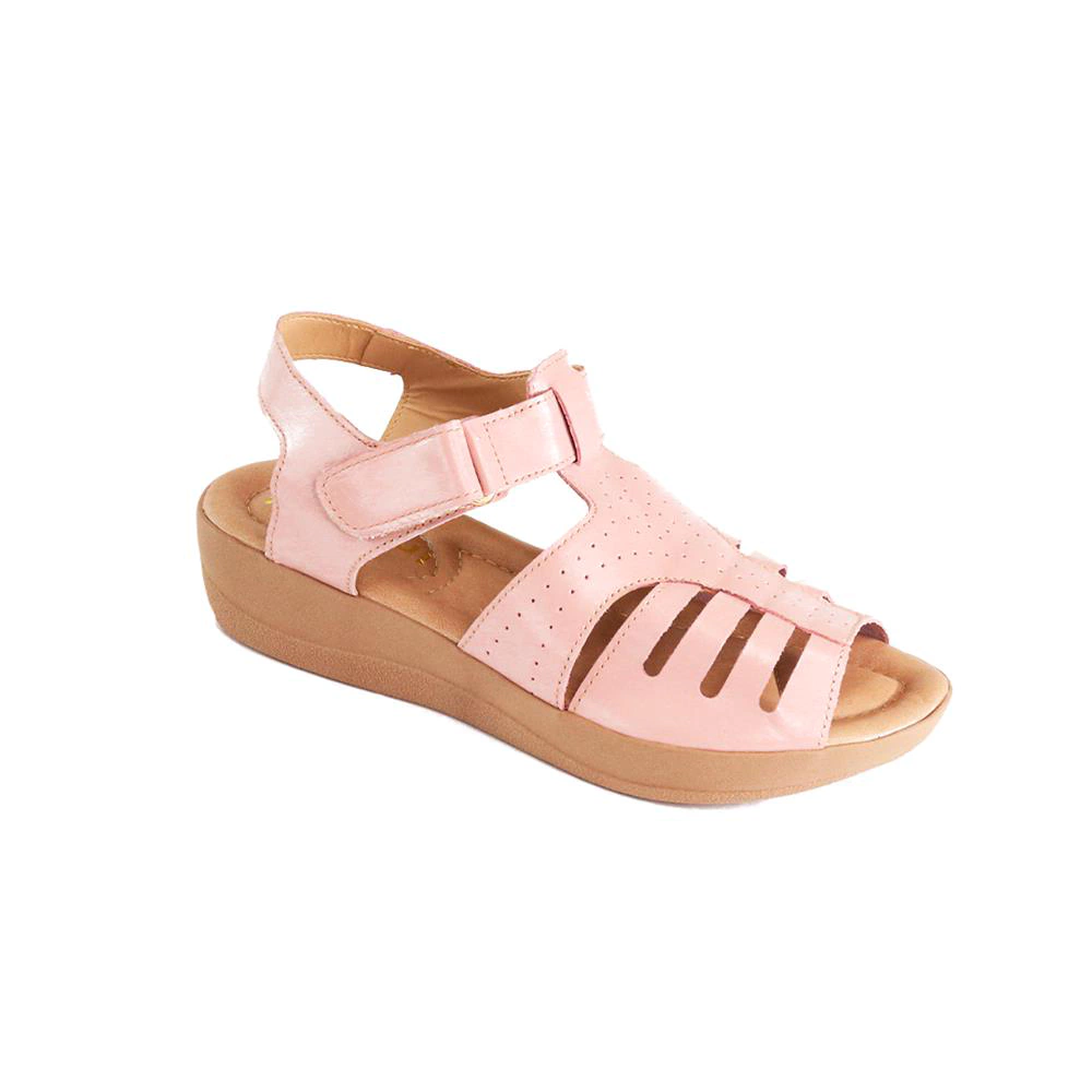 Sandália Slide em couro, na cor Rose. Conta com um Salto tipo Anabela de 4cm (4cm salto e 2cm de meia-pata), e fixação em velcro. Solado em PVC Expandido, o que garante leveza, resistência e durabilidade.
