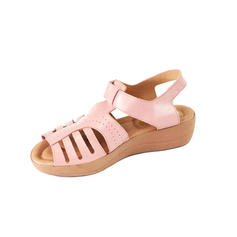 Sandália Anabela Baixa em Couro Rose Italeoni