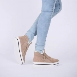 O Tênis Bota em Camurça Italeoni possui um estilo super casual. Ele é um tênis cano alto por possuir uma sola flatform, mas também é uma bota em couro super macio de camurça.