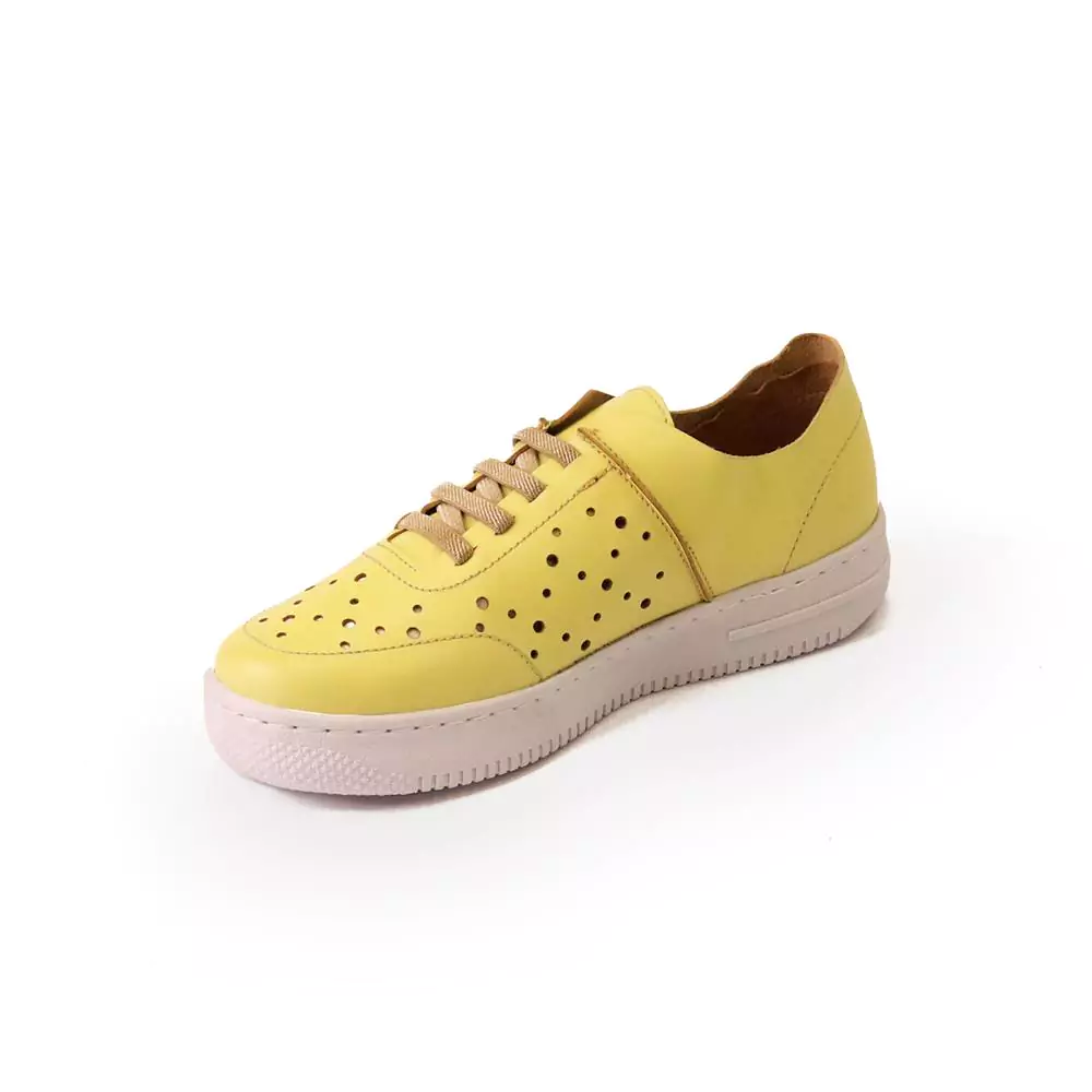 Tênis Feminino Flatform em Couro Areia (bege), com detalhe em couro vazado. Amarração em cadarço. Solado branco produzido em PVC Expandido, o que garante leveza, resistência e durabilidade.